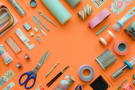 Arts and craft flat lay with craft materials. Back to school background