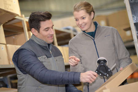 manual workers checking package in clipboard