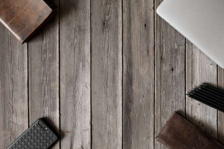 Office supplies on leather surface table