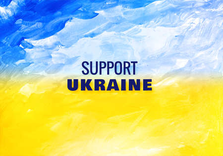 Background with Ukrainian flag colors with inscription Support Ukraine. Horizontal image