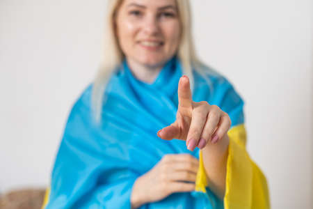 woman and flag of ukraine. Showing support and solidarity for Ukraine.