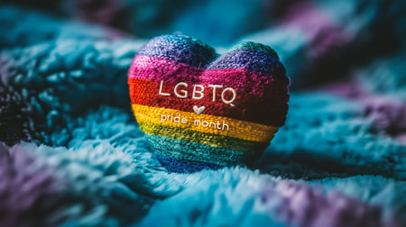 LGBT rainbow heart on the background of a knitted plaid.