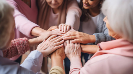 Women join hands touching for encouragingly to each other for stronger with love and tender, Day for the Elimination of Violence Against Women concept, Generative AI illustration