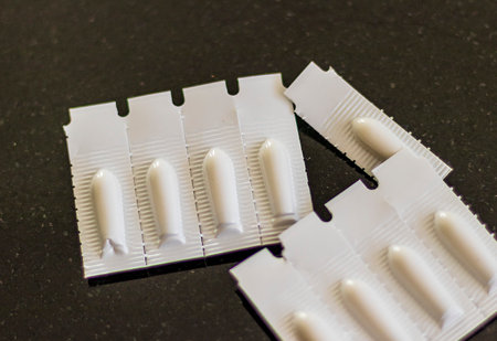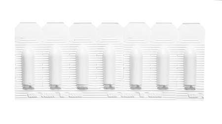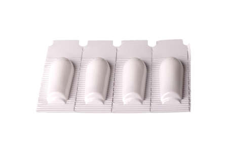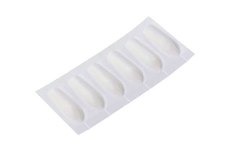 White Medical Suppositories in Blister (strip) - pills on white background.