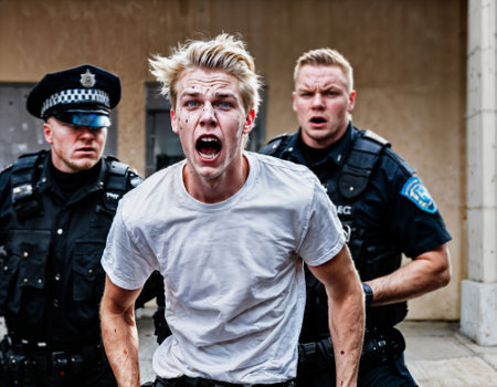 London | UK - 2021.07.12: Police officers arresting two aggressive men at trafalgar square just before the Euro 2020 footbal match