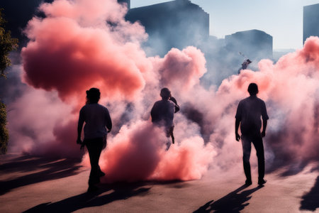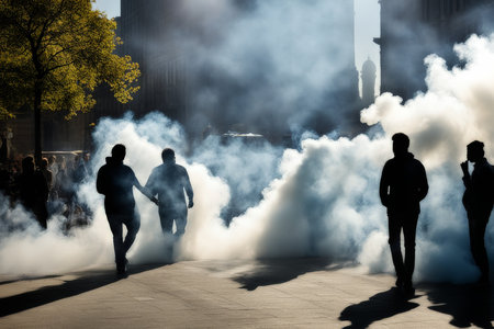 Police dispersing tear gas amid a crowd of protesters, showing the chaos and emotional turmoil. Generative Ai