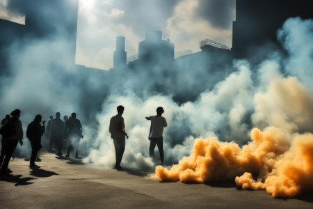 Urban turmoil, street riots civil unrest and societal tensions, chaos and intensity of public protest and demonstration in the heart of the city