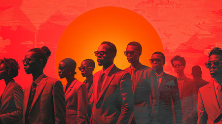 Group of Multiethnic Business People Standing in a Row and Looking at the Sun