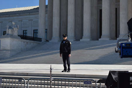 Washington, DC, USA - November 1, 2021: Police Officer Stands in Front of the U.S. Supreme Court While the Court Hears Arguments on the Texas Abortion Law to Provide Security