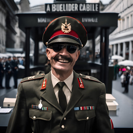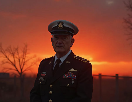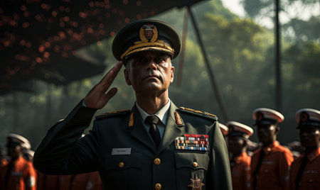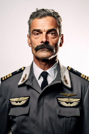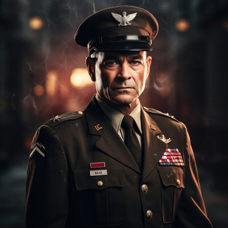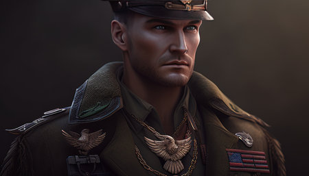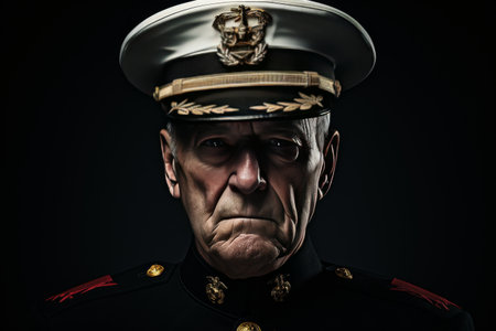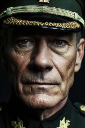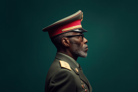 A striking profile portrait of a military officer wearing a formal uniform and cap. The image captures the dignified expression and details of the attire against a solid background.ai generated.