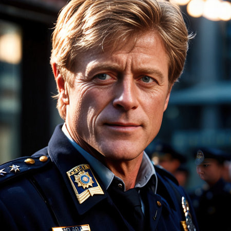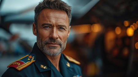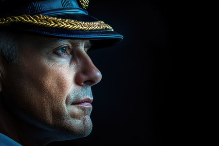 An officer in uniform displays a focused expression Conveys security and authority. Concept Portrait Photography, Uniform, Authority, Professionalism, Confidence