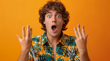 Close-up portrait of a man with a shocked expression against a yellow background. His eyes are wide, and his mouth is open in surprise.