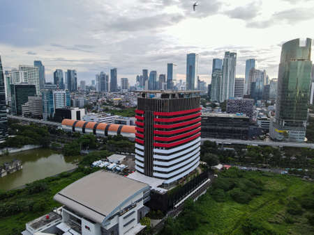 Jakarta Indonesia - June 2, 2020 : Aerial view from Jakarta, BNI Tower Jakarta Urban City of Indonesia. Cityscape Indonesia, Landmark of Jakarta