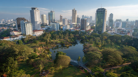 Generative AI : Aerial view above of Jakarta downtown Indonesia