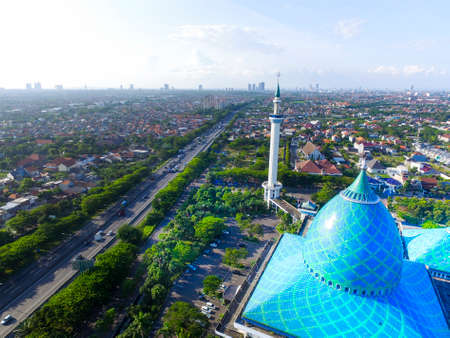 Surabaya Indonesia June 2, 2020 : Aerial of Al Akbar mosque islamic center in Surabaya Indonesia