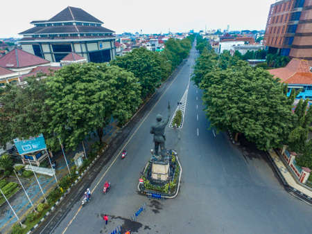 Aerial view Tugu Muda, the famous landmark building in Semarang, Indonesia