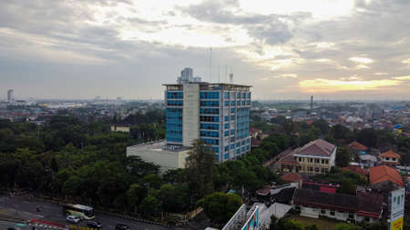 Aerial view of Apartment location Bekasi when sunrise. Bekasi, Indonesia, March 9, 2021