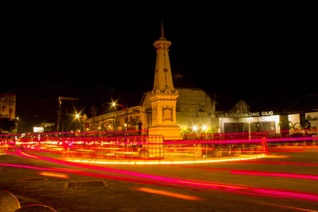 scenic view in the night at Yogyakarta monument (Indonesian: Tugu Yogyakarta) after revitalization. photographed with the Motion Speed ​​technique