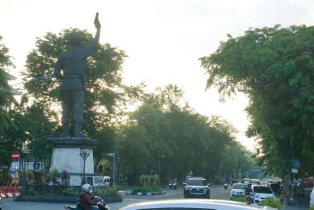 Surakarta, Indonesia – December 20, 2021: Gladak Statue or the Slamet Riyadi Statue is a form of appreciation to Captain Slamet Riyadi in the city of Solo in the afternoon. Jalan Tugu Slamet Riyadi