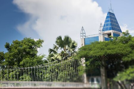 Canopy steel bridge walkway in the garden, stock photo