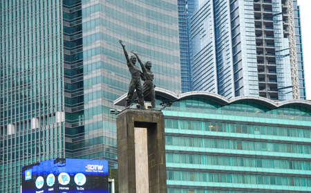 JAKARTA, Indonesia - October 10, 2018: Youth Advancement Monument is as known as Patung Pemuda Membangun at Senayan Roundabout, Jakarta, Indonesia.