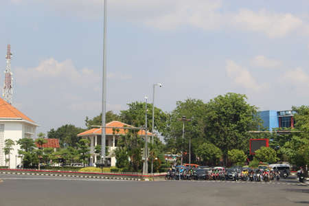 Urban scenery in the city of Semarang. there are crowded vehicles and parks