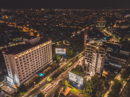 Beautiful Aerial Night View of Surabaya