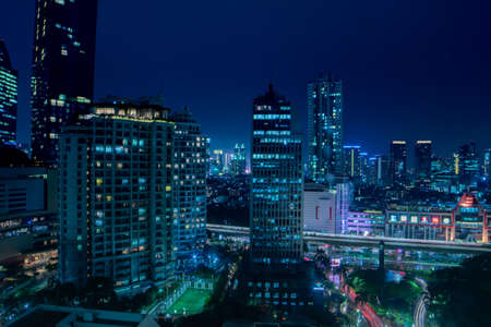 Jakarta, Indonesia - March 15, 2019 : Enjoying and snap a stunning and beautiful photograph from the rooftop at Mega Kuningan Jakarta in the dark