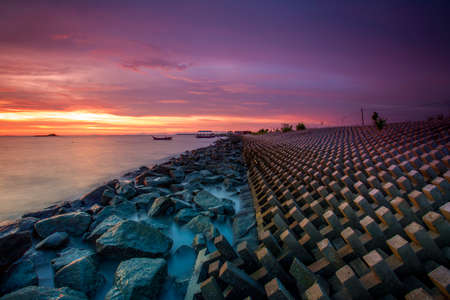 Beautiful view of sunset at Penang, Malaysia. Nature composition. soft focus,blur due to long exposure.visible noise due to high ISO
