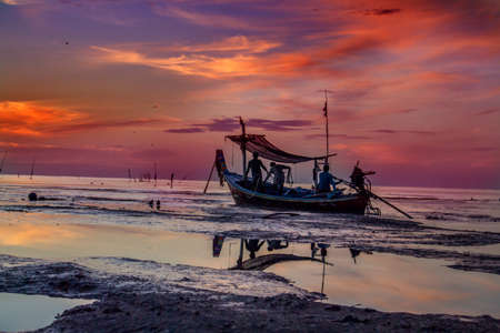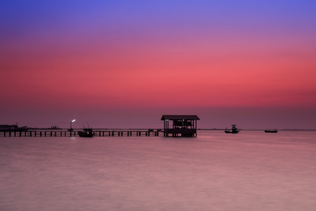 Fishing boat pier at dusk with beautiful twilight sky