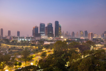 Skyscrapers and skyline of Bangkok above a park