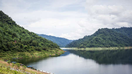 Nature scene of Srinagarind Dam with cloudy sky at kanchanaburi ,Thailand