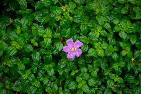 Purple flower on green leaves background,Flowering plant.