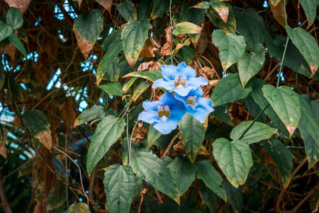 Blue flowers blooming in the tropical garden