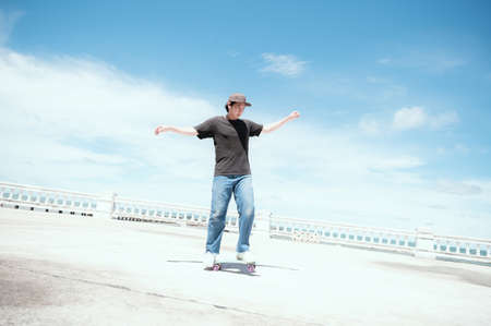 Riding surf skateboard on a sunny summer day