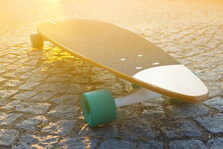 black longboard on the street. Sunny summer day