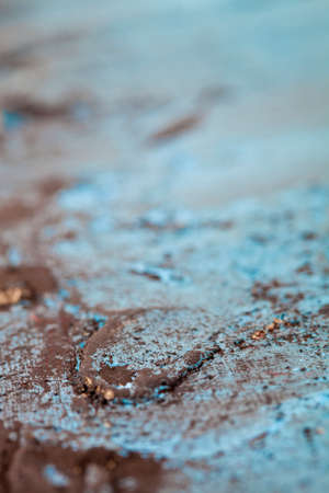 Sky blue acrylic paint. Decorative art abstract background. Smeared colored foam surface.