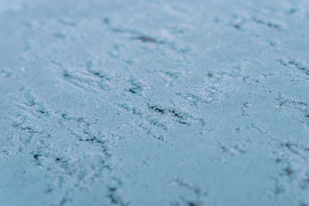 Close up of frost pattern. Colored Ice crystals or cold winter background. Abstract frosty pattern on glass, background texture