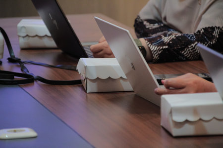 Engineer and technician Minitures are fixing camera mirror box assembly , Miniture workers are checking optics and carry out maintenance and cleaning of the broken camera at the service center