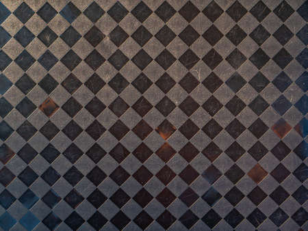 Geometric ornament with a unique texture. Blue background, wall, surface. Aged decorative background for the interior. Vintage design. Square elements with patterns.