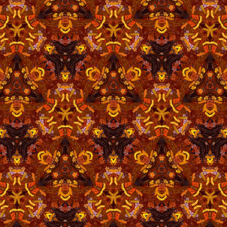 A vibrant and intricate floral pattern with swirling designs in warm colors