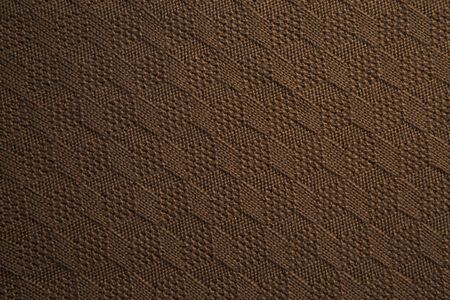 Textile abstract background. Clothing industry concept. Wavy clean material. Fibers of knitted clothes brown white threads. Knitted fabric threads macro