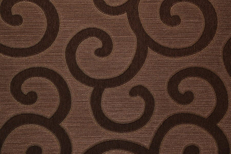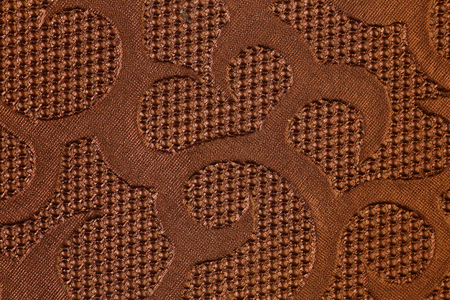 Abstract background of a heavy brown brocade fabric with interwoven repeat design.