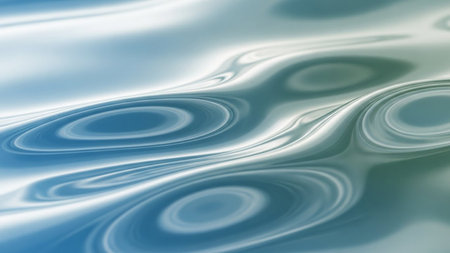 The close up captures the mesmerizing patterns created by ripples on the surface of calm water. Soft light reflects off the fluid enhancing the contrasting shades and textures of the liquid. The image conveys a sense of tranquility and fluidity showcasing the beauty of natural movement