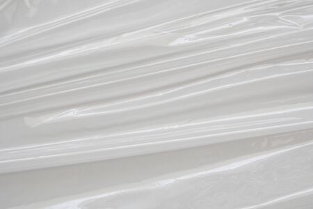 Crumpled clear plastic background, abstract glossy broken surface texture with creases