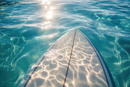 Detailed Surfboard with Transparent Ocean Water and Sun Rays