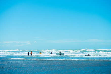 2018, FEB 4 - Christchurch, New Zealand, People enjoy their activities at the beautiful beach on a sunny blue sky day.