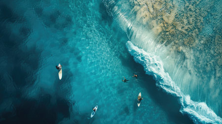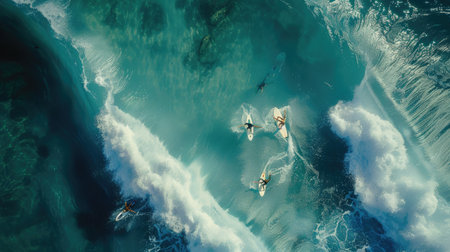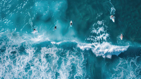 A group of surfers are gliding on an azure wave in the electric blue ocean, surrounded by liquid beauty of the natural landscape AIG50