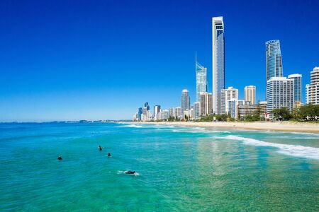 GOLD COAST, AUSTRALIA - January 9th, 2014: the beach and landscape in Surfers Paradise on the Gold Coast, a popular destination in Queensland