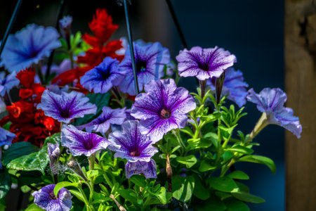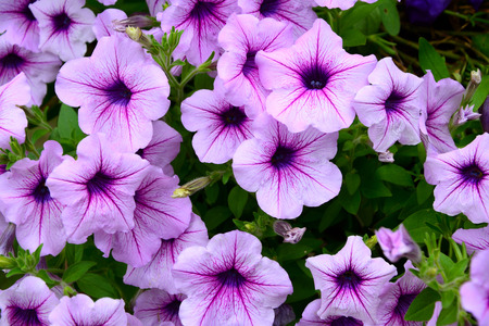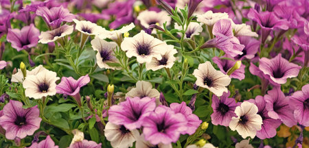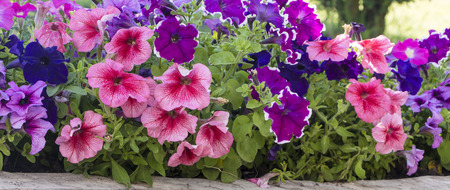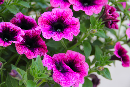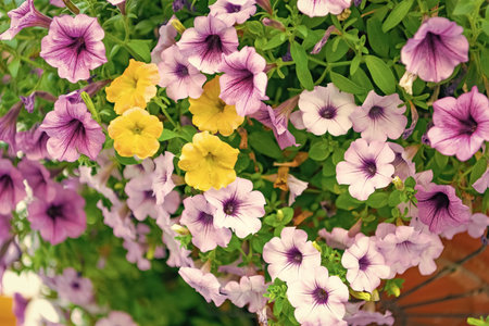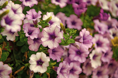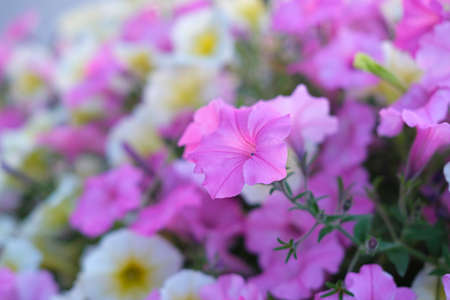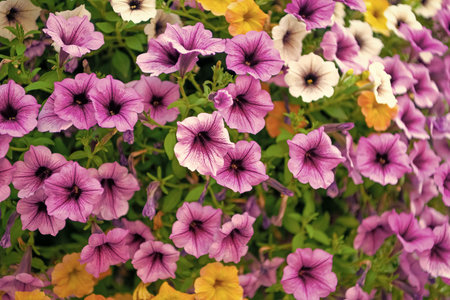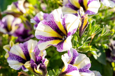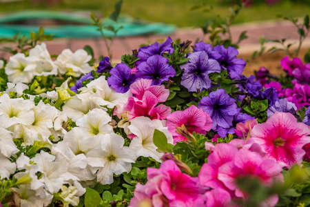 Petunia multi-colored composition of flowers in a natural environment in full bloom from a close distance, elegant colorful plants